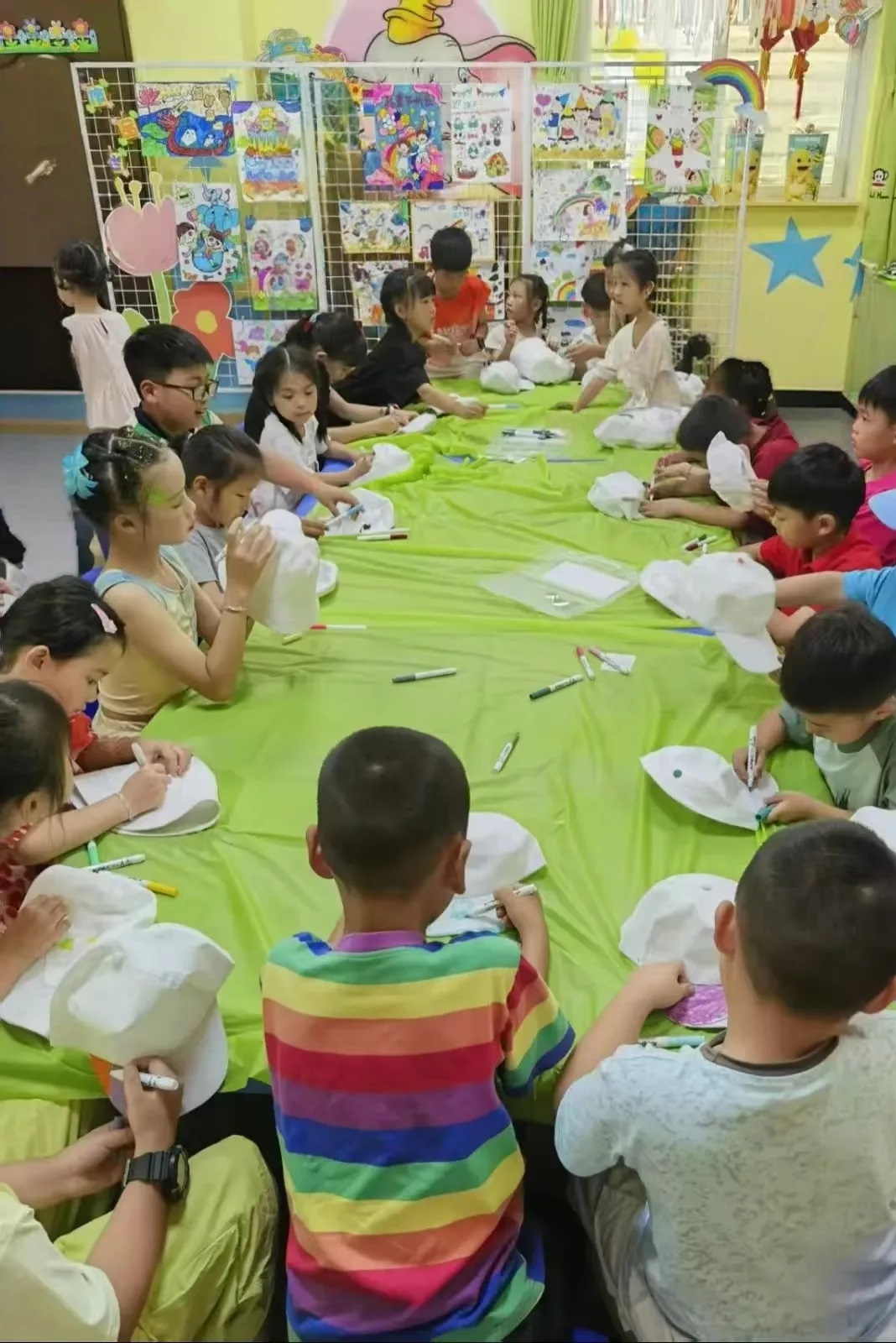 現場布置了童趣盎然的繪畫展示區,孩子們的作品色彩斑斕,充滿想象力,引得孩子紛紛駐足欣賞。隨后,全體參與者齊聚一堂,用一張大合影定格這溫馨的時刻.此外,參與繪畫報名的小朋友也領取了專屬獎勵,笑容洋溢在每一張稚嫩的臉龐上。