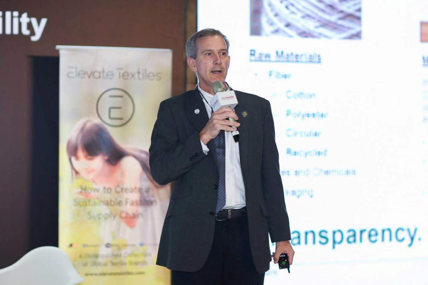 環(huán)境、健康、安全和可持續(xù)發(fā)展副總裁—Jimmy Summers先生在論壇上提出:到2025年,Elevate Textiles將在三個(gè)關(guān)鍵環(huán)境領(lǐng)域(原料纖維、水和溫室氣體)樹(shù)立可持續(xù)發(fā)展的卓越里程碑。