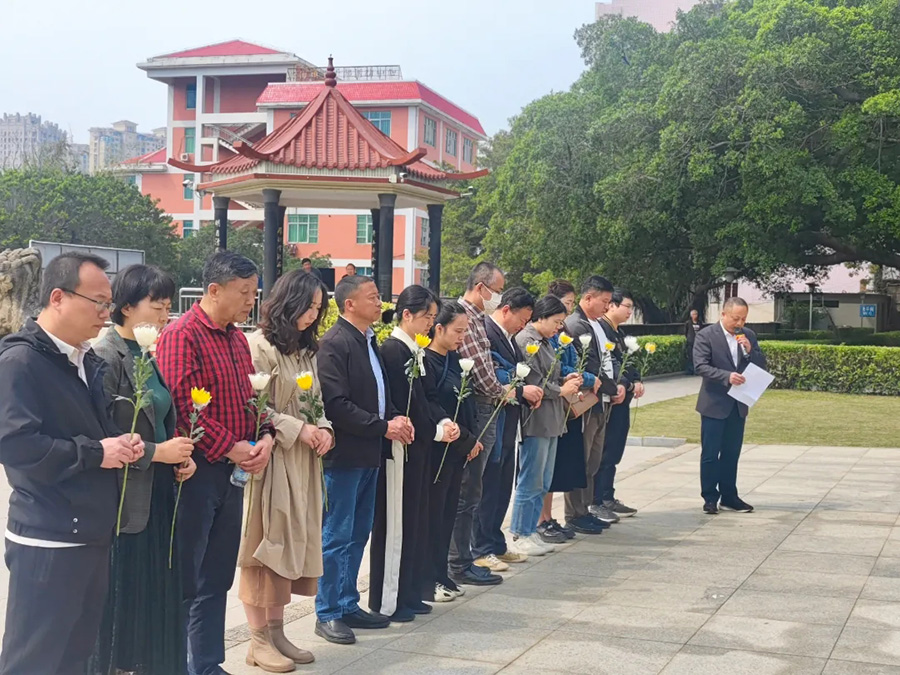 清晨,陽光灑在陵園的大地上,映照著烈士們不朽的英名。華寶集團的黨員整齊列隊,肅立在烈士紀(jì)念碑前,在沉痛的哀樂聲中向烈士們深深鞠了三躬。